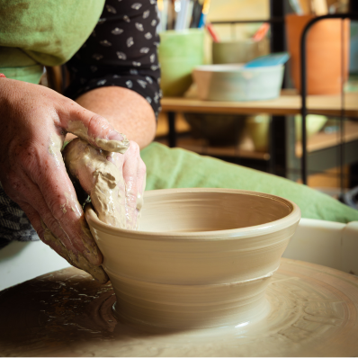 – Gebruik van professionele draaischijven, materialen en klei